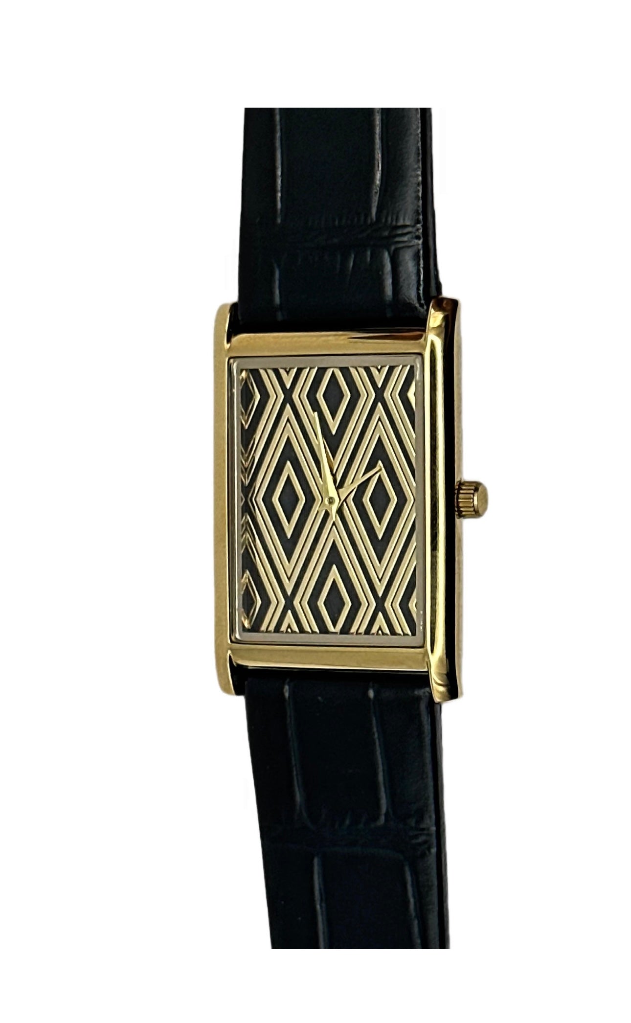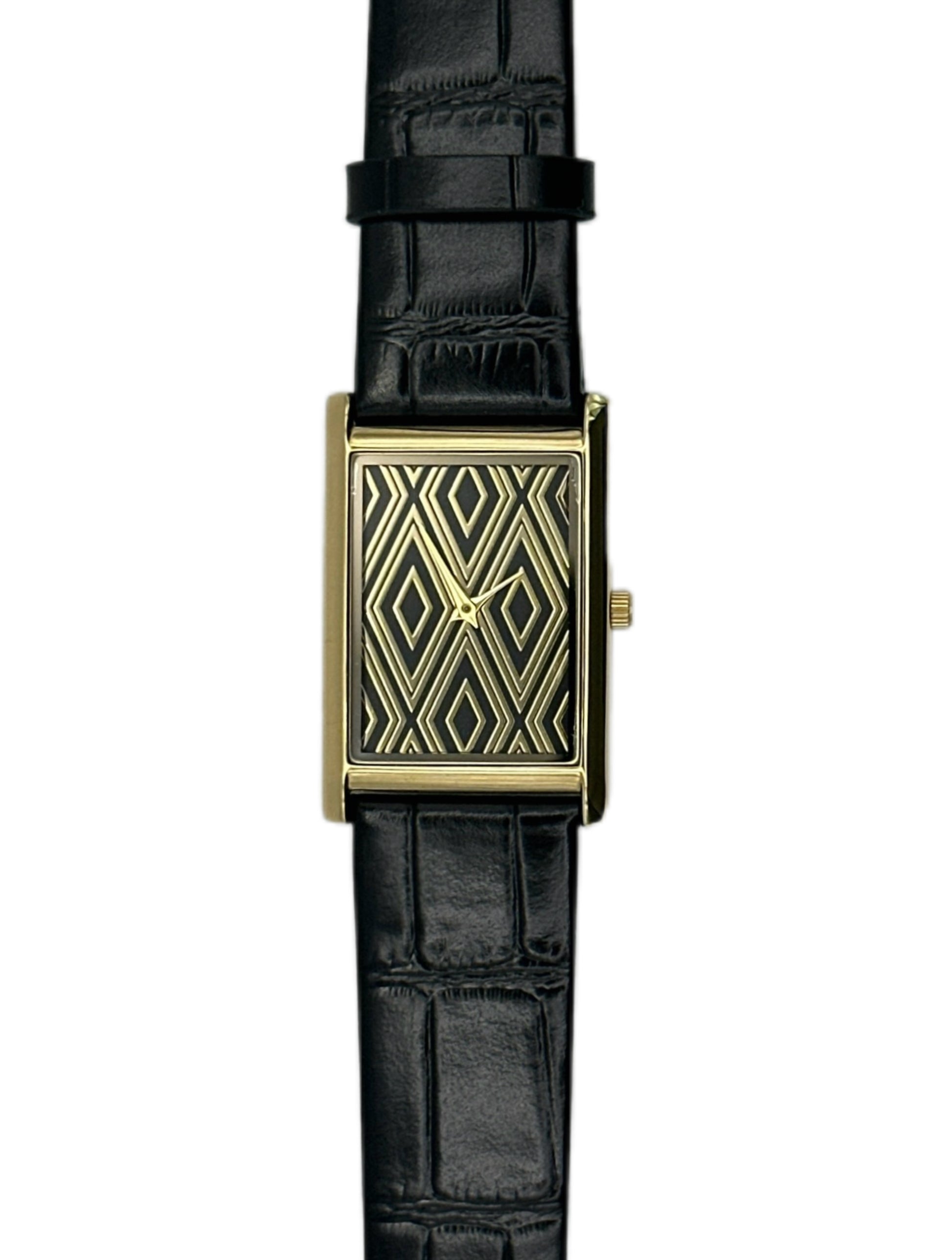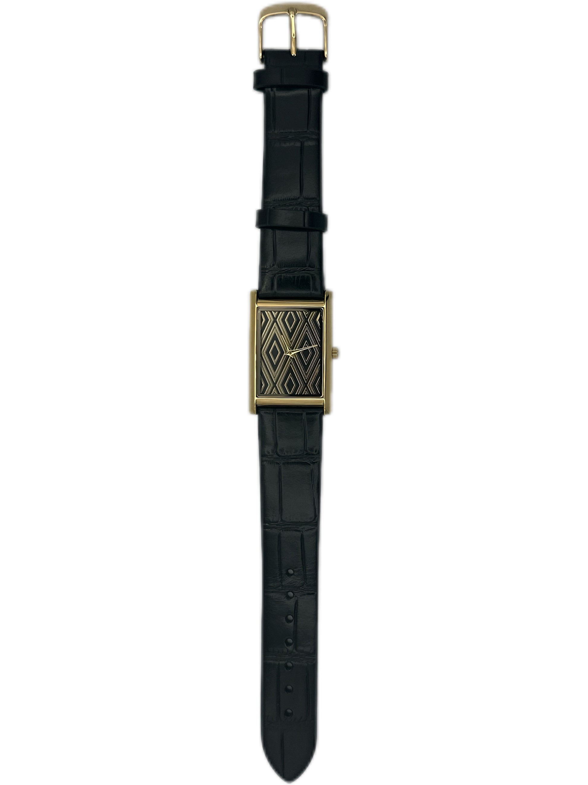 The ๐ฌ๐๐๐ฝ๐พ๐บ๐ ๐ฒ๐๐๐๐บ๐๐๐๐พ ๐ฃ๐๐บ๐๐๐๐ฝ ๐ถ๐บ๐๐ผ๐ features a sophisticated rectangle dial with diamond pattern inspired by Imigongo, a traditional Rwandan art form characterized by geometric patterns created using raw and natural materialsโexuding a touch of elegance and refinement.