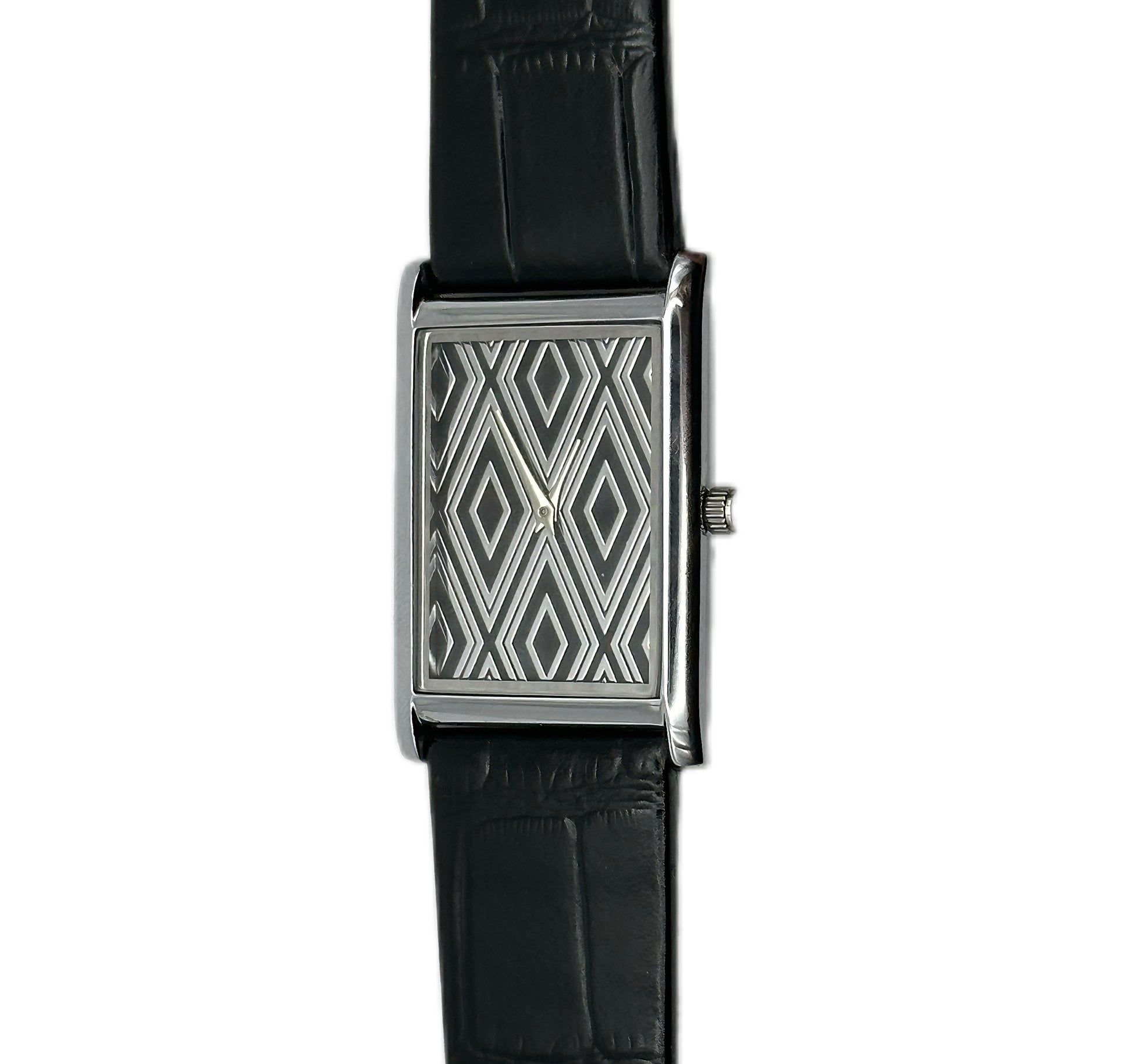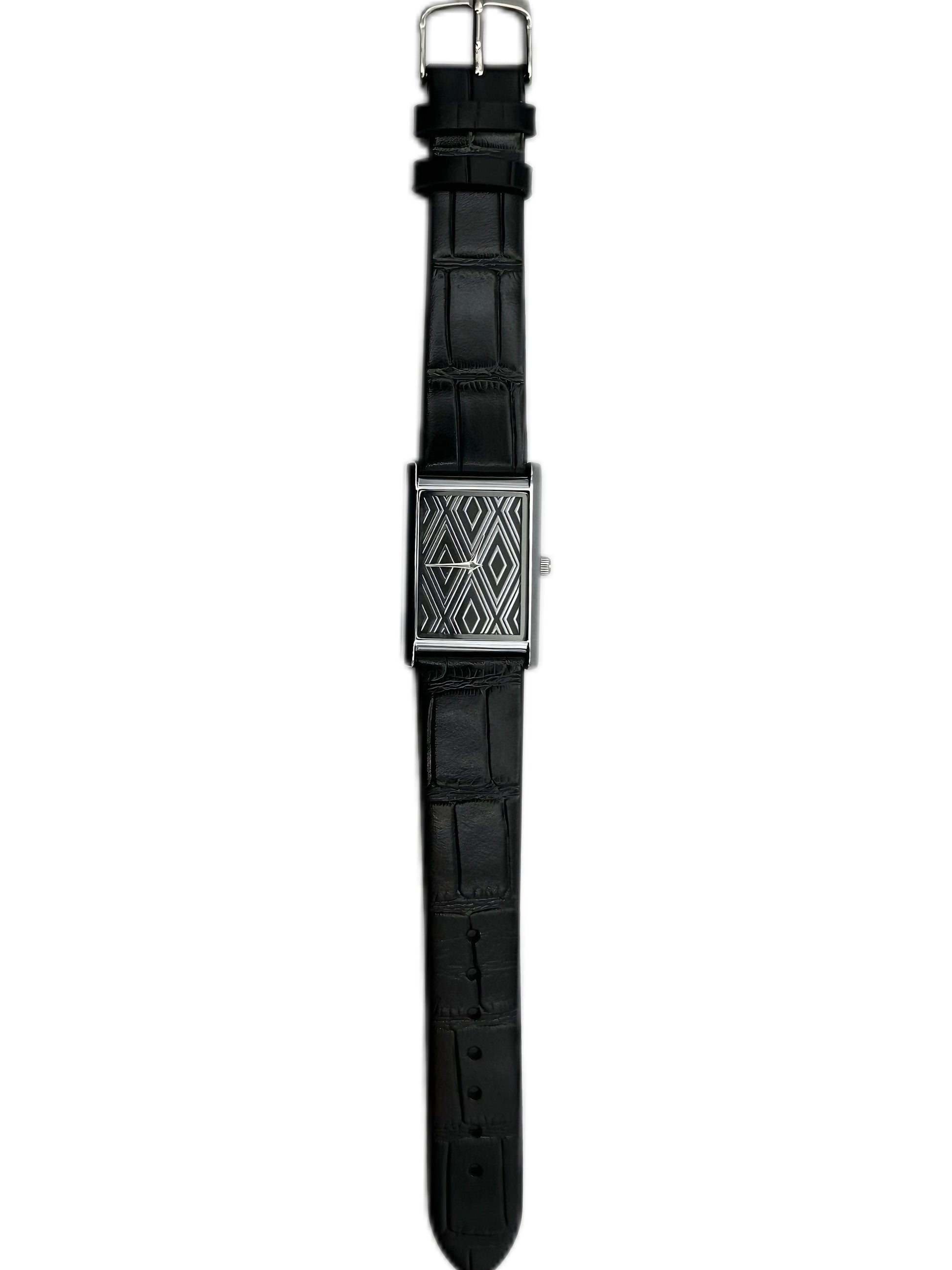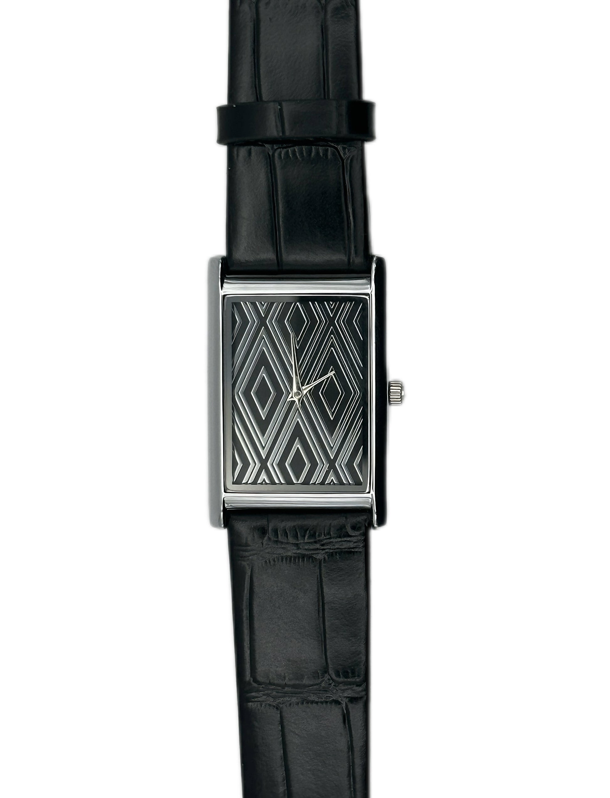 The ๐ฌ๐๐๐ฝ๐พ๐บ๐ ๐ฒ๐๐๐๐บ๐๐๐๐พ ๐ฃ๐๐บ๐๐๐๐ฝ ๐ถ๐บ๐๐ผ๐ features a sophisticated rectangle dial with diamond pattern inspired by Imigongo, a traditional Rwandan art form characterized by geometric patterns created using raw and natural materialsโexuding a touch of elegance and refinement.